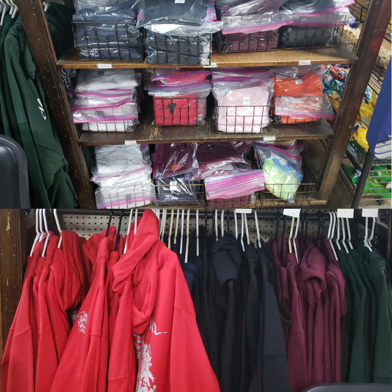 100% cotton, Available in Adult sizes S,M,L,XL,2XL and 3XL, Comes in Black, Navy Blue with white or orange print, Hunter Green, Maroon with white or orange print, Red, Pink and Tie Dye.